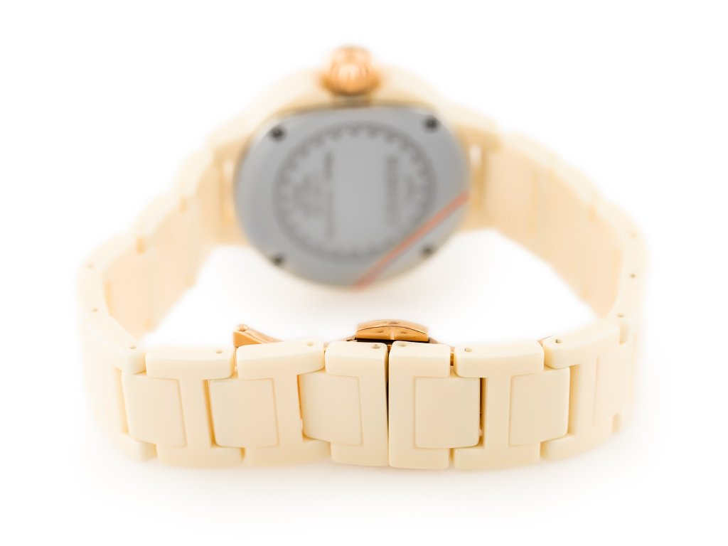 Zegarek damski Bisset BSPD76 z serii Flossy to bardzo kobiecy zegarek w kolorze cream.  Sercem zegarka jest mechanizm RONDA SWISS EOL. Ceramiczna koperta, ceramiczna pasek, mineralne szkło i wodoszczelność do 30m to podstawowe atuty tego zegarka.